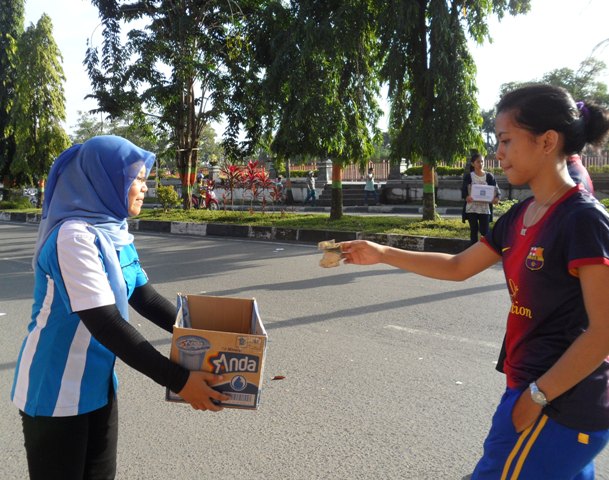 | Seorang pejalan memberikan sumbangan |