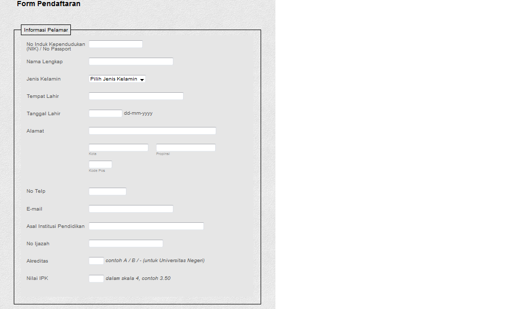 | Contoh Formuli Pendaftaran CPNS online 2013 |