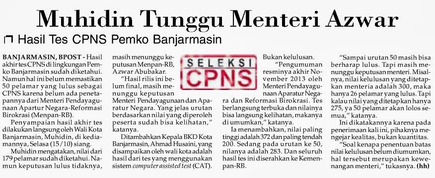 | Pengumuman Kelulusan Hasil Tes CPNS Banjarmasin Bpost |