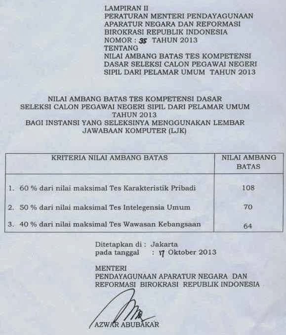 Keluhan tersebut tidak hanya datang dari peserta tes di Kalsel, di provinsi Kalteng keluhan senada juga menjadi indikator kekhawatiran para peserta terlebih passing grade nasional untuk Tes CPNS 2013 tahun ini cukup tinggi yakni 108 Tes Karakteristik Pribadi (TKP), 70 Tes Intelejensia Umum (TIU) dan 64 Tes Wawasan Kebangsaan (TWK). Mereka khawatir akan banyak peserta yang tidak bisa mencapai ambang batas nilai TKD yang ditetapkan oleh Kemenpan-RB. Kekhawatiran tersebut akhirnya memunculkan sebuah pertanyaan, mungkinkah Passing Grade TKD CPNS 2013 di turunkan?