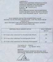Kembali pada pertanyaan di atas, mungkinkah passing grade diturunkan ? jawabannya mungkin saja. Hal ini pernah terjadi pada tahun 2012. Ada beberapa daerah yang oleh pusat passing grade TKD nya diturunkan di antaranya Balikpapan, Manggarai timur, Tulang Bawang dan Bangka Barat. Keputusan tersebut diambil Kemenpan-RB lantaran rendahnya hasil tes peserta. Karenanya jika hasil tes CPNS 2013 tahun ini sangat rendah secara keseluruhan bukan tidak mungkin Kemenpan-RB akan menurunkan nilai ambang batas TKD daerah tersebut.