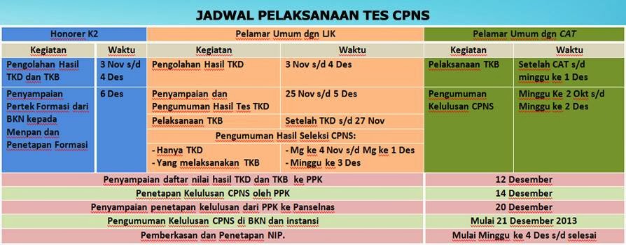 Berdasarkan surat edaran tersebut yang diterbitkan 11 Desember 2013 tersebut pengumuman resmi TKD CPNS 2013 untuk pelamar umum akan di laksanakan serentak pada 24 Desember 2013. Sedangkan untuk honorer K2 akan di laksanakan pada Minggu ke-4 bulan Januari 2014.